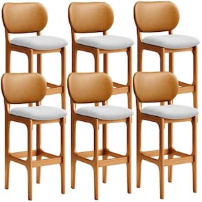 Amplamente sofisticado, o Kit 6 Banquetas Alta Bar Cozinha Jantar Betta L02 Imbuia Couríssimo Whisky Linho Cinza - Lyam Decor irá agregar ainda mais valor em sua decoração!! Sendo capaz de compor muito bem o ambiente, é produzido com materiais de excelente qualidade, a resistente estrutura em madeira de Taeda, na cor imbuia, conta com apoio para os pés (que garante maior segurança), além do assento e encosto estofados super confortáveis e convidativos, que são revestidos em tecido Couríssimo e Linho, composição extremamente elegante.