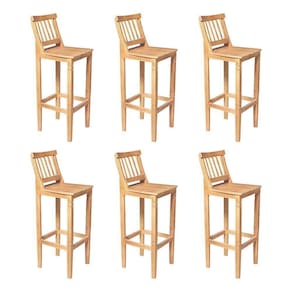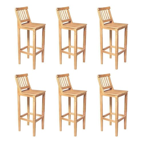 Kit 6 Banquetas Alta De Madeira Maciça Ripada Com Encosto Confort - l - Cor: Bege