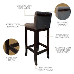 A Banqueta Alta Melody é uma peça de destaque para qualquer ambiente, produzida em Madeira Maciça com acabamento em Verniz, garantindo durabilidade e elegância. Seu assento e encosto preenchidos com Espuma D26 e D23, respectivamente, oferecem o máximo conforto para refeições e momentos de descontração. Além disso, o revestimento em Tecido Suede confere um toque moderno e versátil. Seja na cozinha, sala de jantar ou espaço gourmet, essa banqueta é a escolha perfeita para agregar charme e funcionalidade ao lar! CARACTERÍSTICAS TÉCNICAS: - Produzido em Madeira Maciça; - Acabamento em Verniz na cor Capuccino; - Assento Preenchido com Espuma D26; - Encosto Preenchido com Espuma D23; - Revestimento em Tecido Suede na cor Cinza. *Indicada para Bancadas/Mesas com Alt. 100/105cm. *PRODUTO ENVIADO MONTADO. INFORMAÇÕES TÉCNICAS: Altura Total: 100 Cm Altura até Assento: 75 Cm Altura até Travessa: 23 Cm Altura Encosto: 35 Cm Largura Assento: 38 Cm Largura Estrutura: 36 Cm Profundidade Total: 42 Cm Profundidade Assento: 41 Cm Peso: 7 kg *Kit Composto por 6 Unidades de Banquetas Alta Melody. INFORMAÇÕES ADICIONAIS: ATENÇÃO: Móvel produzido em madeira maciça natural podendo ocorrer mudança no tom da madeira conforme o produto. *Conferir se o produto está de acordo com o que comprou, produto danificado não será aceito troca. **As imagens ambientadas são meramente ilustrativas e podem apresentar itens que não compõe o produto. As cores do produto podem variar de acordo com o monitor, a iluminação do ambiente ou sua percepção visual. ***Limpeza deve ser feita com pano macio e seco ou levemente umedecido com água e sabão neutro. Não devem ser utilizados produtos abrasivos. Garantia para defeitos de fabricação conforme Código de Defesa do Consumidor. Marca: Ccs Interiores