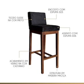 A Banqueta Alta Lisboa é uma peça de destaque para qualquer ambiente, produzida em Madeira Maciça com acabamento em Verniz Castanho, garantindo durabilidade e elegância. Seu assento e encosto preenchidos com Espuma D26 e D23, respectivamente, oferecem o máximo conforto para refeições e momentos de descontração. Além disso, o revestimento em Tecido Suede na cor Preto confere um toque moderno e versátil. Seja na cozinha, sala de jantar ou espaço gourmet, essa banqueta é a escolha perfeita para agregar charme e funcionalidade ao lar!