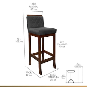 Apresentamos a banqueta Nice, feita com madeira maciça de reflorestamento e acabamento em verniz. Seu assento preenchido com espuma D26 e encosto com espuma D23 garantem conforto duradouro. O encanto adicional vem da costura matelassê no encosto, enquanto o revestimento em suede adiciona uma sensação de luxo. Adapta-se perfeitamente a qualquer espaço, adicionando elegância e conforto instantaneamente. CARACTERÍTICAS TÉCNICAS: - Produzido em Madeira Maciça de Reflorestamento; - Acabamento em Verniz na cor Castanho; - Assento Preenchido com Espuma D26; - Encosto Preenchido com Espuma D23; - Encosto com Costura Matelassê; - Revestimento em Suede na cor Cinza. *Indicada para Bancadas/Mesas com Alt. 100/105 cm. *PRODUTO ENVIADO MONTADO. INFORMAÇÕES TÉCNICAS: Altura Total: 102 cm Altura até Assento: 75 cm Altura até Travessa: 23 cm Altura Encosto: 35 cm Largura Assento: 38 cm Largura Estrutura: 36 cm Profundidade Total: 42 cm Profundidade Assento: 41 cm Peso: 7 kg *Kit Composto por 6 Banquetas Nice. INFORMAÇÕES ADICIONAIS:ATENÇÃO: Móvel produzido em madeira maciça natural podendo ocorrer mudança no tom da madeira conforme o produto;*Conferir se o produto está de acordo com o que comprou, produto danificado não será aceito troca;**As imagens ambientadas são meramente ilustrativas e podem apresentar itens que não compõe o produto. As cores do produto podem variar de acordo com o monitor, a iluminação do ambiente ou sua percepção visual;***Limpeza deve ser feita com pano macio e seco ou levemente umedecido com água e sabão neutro. Não devem ser utilizados abrasivos como palha de aço e objetos cortantes;Garantia para defeitos de fabricação conforme Código de Defesa do Consumidor. Marca: CCS Interiores