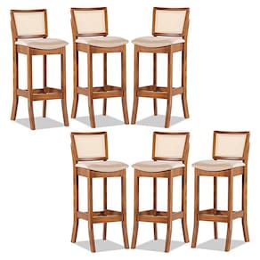 Se você está procurando uma banqueta que se destaque em todos os ambientes, precisa conhecer a Banqueta Portugal. Com um design moderno, ela vai se adequar perfeitamente as suas necessidades do dia a dia. A Banqueta Portugal é perfeita para ser utilizada em diversos espaços, como a bancada da cozinha americana, balcões altos em espaços gourmet, mesas bistrô no cantinho do churrasco e muito mais. Ela traz estilo e funcionalidade para qualquer ambiente em que for colocada. Produzida com materiais de excelente qualidade, a Banqueta Portugal garante maior durabilidade e resistência. Não perca mais tempo procurando a banqueta perfeita e venha conhecer nosso catálogo para deixar sua casa mais completa e cheia de estilo com todos os produtos da Rio Madeira Interiores. CARACTERÍSTICAS TÉCNICAS: - Produzido em Madeira Maciça Sustentável - Acabamento em Verniz na cor Imbuia - Encosto com Revestimento em Rattan com Fibra Sintética Quadriculada na cor Bege - Assento Estofado Preenchido com Espuma D23 - Assento com Revestimento em Linho Bege M58 - Banqueta Entregue Montada *Kit Composto por SEIS Banquetas INFORMAÇÕES TÉCNICAS: Altura Total: 100 cm Altura Chão até Assento: 75 cm Altura Encosto: 29 cm Largura Total: 35,5 cm Largura do Assento: 41 cm Profundidade Total: 45,5 cm Profundidade Assento: 35 cm Peso: 7 kg INFORMAÇÕES ADICIONAIS: Garantia para defeitos de fabricação conforme Código de Defesa do Consumidor. - Produto em madeira maciça natural, podendo ocorrer variação no tom ou cor da madeira. - As imagens ambientadas são meramente ilustrativas e podem apresentar itens que não compõe o produto, as cores do produto podem variar de acordo com o monitor, a iluminação do ambiente ou sua percepção visual. - Limpeza: Deve ser feita com pano macio e seco ou levemente umedecido com água e sabão neutro. Não devem ser utilizados abrasivos.