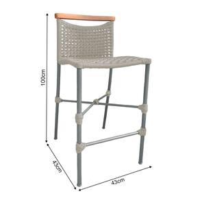 Kit 6 Banquetas Anne em Corda Náutica Base em Alumínio Cinza com Detalhe em Madeira Areia - Bege