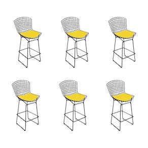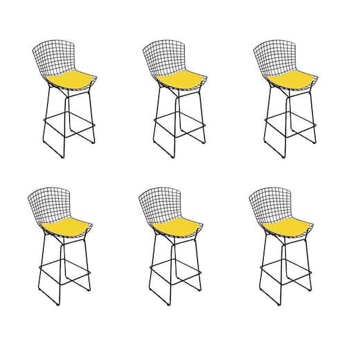 AS IMAGENS SÃO MERAMENTE ILUSTRATIVAS E PODEM SOFRER VARIAÇÕES DE COR E PEQUENOS DETALHES DE ACORDO COM O SEU MONITOR, ILUMINAÇÃO DO AMBIENTE E ATÉ MESMO A SUA PERCEPÇÃO VISUAL.Kit 6 Banquetas Bistrà Bertoia Preta D60 com Assento Amarelo