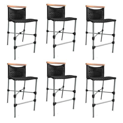 Kit 6 Banquetas Anne Em Corda Náutica Base Em Alumínio Cinza Com Detalhe Em Madeira Preta - Cor: Preto