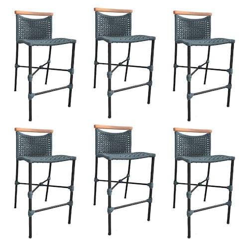 Kit 6 Banquetas Anne Em Corda Náutica Base Em Alumínio Preta Com Detalhe Em Madeira Cinza - Cor: Cinza