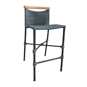 Kit 6 Banquetas Em Corda Náutica Base Em Alumínio Preta Com Detalhe Em Madeira Cinza Cinza - Preto