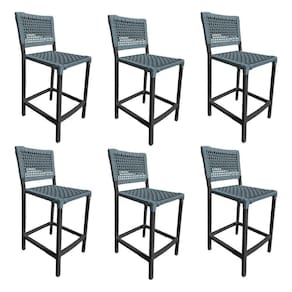 Kit 6 Banquetas França Em Corda Náutica E Base Em Alumínio Preta Para área Gourmet Cinza Cinza - Preto