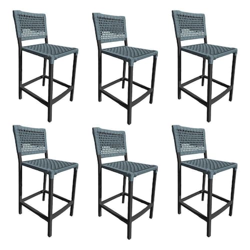 Kit 6 Banquetas França Em Corda Náutica E Base Em Alumínio Preta Para área Gourmet Cinza - Cor: Cinza