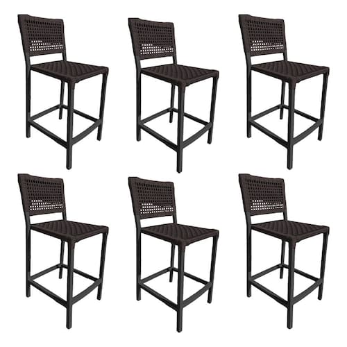 Kit 6 Banquetas França em Corda Náutica e Base em Alumínio Preta para Área Gourmet Marrom