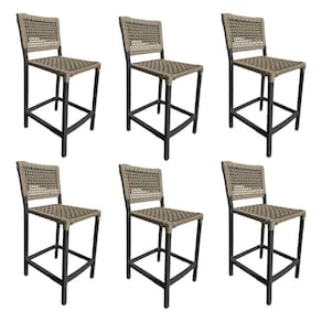 Kit 6 Banquetas França em Corda Náutica e Base em Alumínio Preta para Área Gourmet Rami - Bege