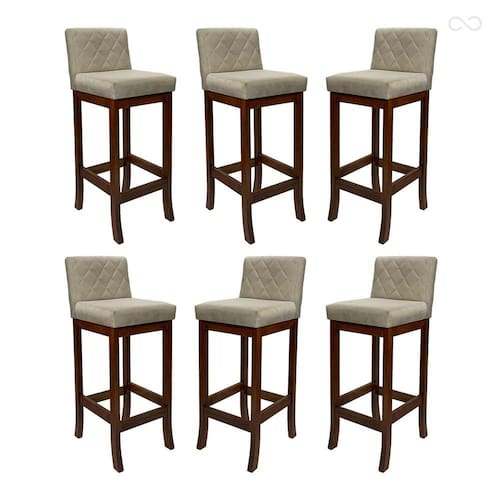 Kit 6 Banquetas Média de Madeira Maciça Tóquio com Encosto Matelassê Suede Bege CCS