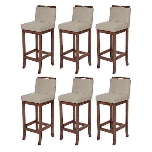 Kit 6 Banquetas Média Turim Madeira Capuccino Suede Bege CCS - Palha