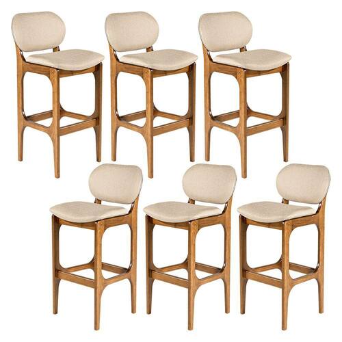 Kit de Banquetas Alta Decor é o modelo ideal para complementar o seu ambiente. Dispõe de um design atual com assento e encosto estofado dando um conforto único ao móvel. As banquetas são móveis versáteis que podem ser utilizados em diversos ambientes e funcionalidades, permitindo composições na decoração e agregando conforto e sofisticação ao ambiente. Podem ser utilizadas em bancadas de salas conjugadas, mesas bistrô em sacadas gourmet ou aonde você precisar. Produzida com madeira maciça, garantindo a sua durabilidade e vida útil. CARACTERÍSTICA TÉCNICAS: - Produzido em Madeira Maciça - Acabamento em Verniz na cor Imbuia - Assento Estofado Preenchido com Espuma D23 - Encosto Estofado Preenchido com Espuma D18 - Tecido de Alta Qualidade Linho Bege M58 - Banqueta Entregue Montado INFORMAÇÕES TÉCNICAS: - Altura Total: 104 cm - Altura até o Assento: 75 cm - Largura Total: 50 cm - Profundidade Total: 54 cm - Peso: 10 kg * Kit Composto por SEIS Banquetas Informações Adicionais: Garantia para defeitos de fabricação conforme Código de Defesa do Consumidor. *ATENÇÃO: Não nos responsabilizamos pela montagem, subir ou içar o móvel. *As imagens ambientadas são meramente ilustrativas e podem apresentar itens que não compõe o produto, as cores do produto podem variar de acordo com o monitor, a iluminação do ambiente ou sua percepção visual. *Limpeza: Deve ser feita com pano macio e seco ou levemente umedecido com água e sabão neutro. Não devem ser utilizados abrasivos.