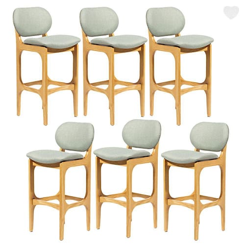 Kit de Banquetas Alta Decor é o modelo ideal para complementar o seu ambiente. Dispõe de um design atual com assento e encosto estofado dando um conforto único ao móvel. As banquetas são móveis versáteis que podem ser utilizados em diversos ambientes e funcionalidades, permitindo composições na decoração e agregando conforto e sofisticação ao ambiente. Podem ser utilizadas em bancadas de salas conjugadas, mesas bistrô em sacadas gourmet ou aonde você precisar. Produzida com madeira maciça, garantindo a sua durabilidade e vida útil. CARACTERÍSTICA TÉCNICAS: - Produzido em Madeira Maciça - Acabamento em Verniz na cor Mel - Assento Estofado Preenchido com Espuma D23 - Encosto Estofado Preenchido com Espuma D18 - Tecido de Alta Qualidade em Linho na cor Verde L84 - Banqueta Entregue Montado * Kit Composto por SEIS Banquetas INFORMAÇÕES TÉCNICAS: - Altura Total: 104 cm - Altura até o Assento: 75 cm - Largura Total: 50 cm - Profundidade Total: 54 cm Informações Adicionais: Garantia para defeitos de fabricação conforme Código de Defesa do Consumidor. *ATENÇÃO: Não nos responsabilizamos pela montagem, subir ou içar o móvel. *As imagens ambientadas são meramente ilustrativas e podem apresentar itens que não compõe o produto, as cores do produto podem variar de acordo com o monitor, a iluminação do ambiente ou sua percepção visual. *Limpeza: Deve ser feita com pano macio e seco ou levemente umedecido com água e sabão neutro. Não devem ser utilizados abrasivos.