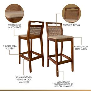 A Banqueta Valência em madeira maciça com acabamento em verniz combina estilo e conforto para sua cozinha. Assento em espuma D26, encosto em rattan e revestimento em linho bege completam o design atemporal. Perfeita para bancadas/mesas de 100/105cm, a Valência eleva o nível de requinte do seu ambiente. Invista em qualidade e leve elegância para sua casa!CARACTERÍTICAS TÉCNICAS:- Produzido em Madeira Maciça;- Acabamento em Verniz na cor Castanho;- Assento Preenchido com Espuma D26; - Encosto com Revestimento em Rattan com Fibra Sintética;- Revestimento em Linho na cor Bege.*Indicada para Bancadas/Mesas com Alt. 100/105cm.