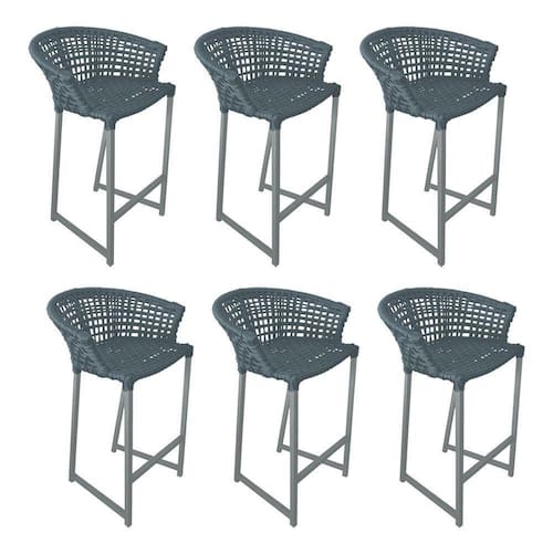 Kit 6 Banquetas Reis Em Corda Náutica E Base Em Alumínio Cinza Para área Gourmet Externa Cinza Cinza
