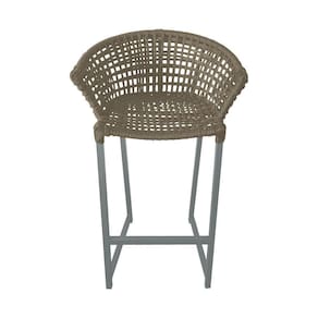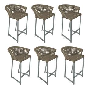 Kit 6 Banquetas Reis Em Corda Náutica E Base Em Alumínio Cinza Para área Gourmet Externa Rami Bege
