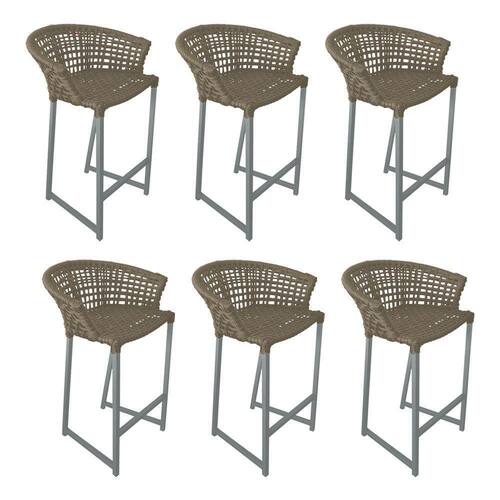 Kit 6 Banquetas Reis Em Corda Náutica E Base Em Alumínio Cinza Para área Gourmet - Externa Rami - Cor: Bege