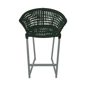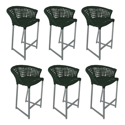 Kit 6 Banquetas Reis em Corda Náutica e Base em Alumínio Cinza para Área Gourmet Verde Musgo