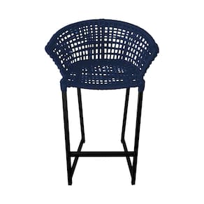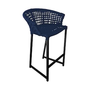 Kit 6 Banquetas Reis em Corda Náutica e Base em Alumínio Preta para Área Gourmet Azul Marinho