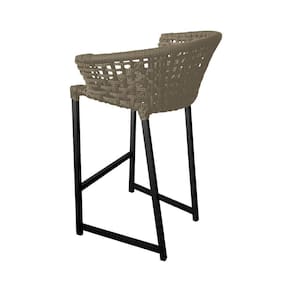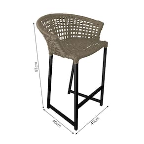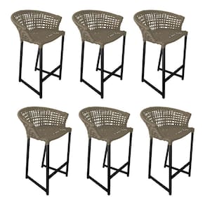 Kit 6 Banquetas Reis Em Corda Náutica E Base Em Alumínio Preta Para área Gourmet Externa Rami Bege - Preto