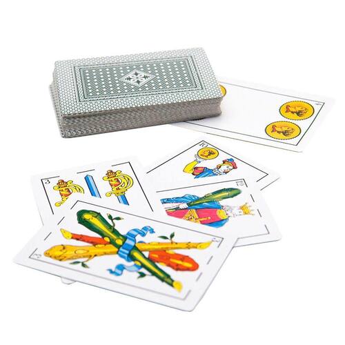 Baralho Espanhol Para Truco 50 cartas---------------------------------------------------------------Tradicional baralho espanhol para jogo de truco, canastra, cacheta, bisca, escova e outros jogos espanhóis e italianosProduto na embalagem original Cartas em papel,MEDIDAS APROXIMADAS DAS CARTAS: 10x6,5cmConteúdo da Embalagem: 6 Unidades