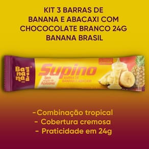 Kit 6 Barra de Banana e Abacaxi com Cobertura de Chocolate Branco 24g - Banana Brasil A doçura da banana com o frescor do abacaxi A Banana Brasil traz uma combinação surpreendente que une o sabor tropical da banana e do abacaxi com a suavidade cremosa do chocolate branco. Um contraste delicioso que transforma cada mordida em uma experiência única. Descrição principal Com 24g na medida certa, esta barra é elaborada a partir da união da banana e do abacaxi, frutas conhecidas pelo sabor naturalmente adocicado e refrescante. Envolvidas por uma camada de chocolate branco aveludado, oferecem uma mistura irresistível de notas frutadas com um toque delicado de chocolate. Prática e versátil, é perfeita para acompanhar os momentos de pausa no trabalho, nos estudos ou simplesmente como uma sobremesa rápida e deliciosa. Sugestões de uso - Como lanche rápido no dia a dia - Para acompanhar cafés, chás ou sucos - Como uma sobremesa individual após as refeições Destaques do produto - Combinação tropical de banana e abacaxi - Cobertura cremosa de chocolate branco - Praticidade em porção individual de 24g - Sabor equilibrado entre fruta e chocolate - Produzida pela Banana Brasil, referência em snacks criativos Ingredientes Banana desidratada, abacaxi desidratado, cobertura sabor chocolate branco açúcar, gordura vegetal, leite em pó integral, soro de leite em pó, emulsificante lecitina de soja e aromatizante . Informações para alérgicos Contém leite e derivados de soja. Pode conter traços de amendoim, castanhas e glúten. Modo de armazenar Conservar em local fresco, seco e protegido da luz. Após aberto, consumir imediatamente para melhor aproveitamento do produto. Marca: Não Informado