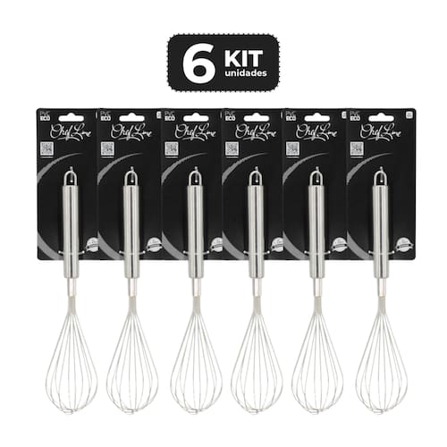 Kit 6 Batedor De Ovos Fouet Inox 28,5 Cm