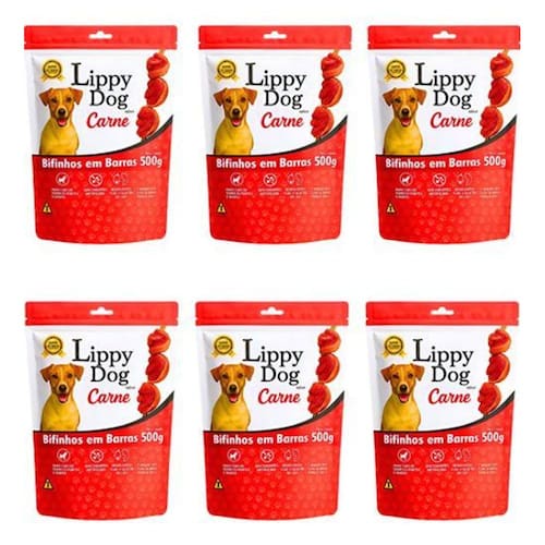 Kit 6 Bifinho Lippy Dog Carne 500g