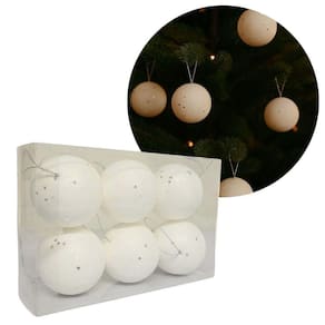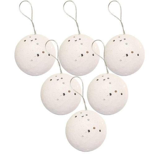 Jogo com 6 Bolas de Natal Brancas Max Glitter com Lantejoulas Prata | 6cm de Diâmetro | Brilho Intenso e Elegância