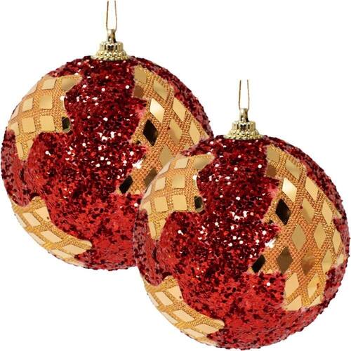 6 Kit ;Bolas Para Árvore De Natal Vermelha Com Glitter Dourado 80mm;