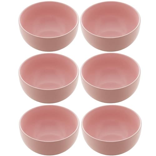 Kit 6 Bowls de Cerâmica Cumbuca 680ml Lyor 14,5x8,5cm Tigela Sopa Sobremesa Salada Rosa
