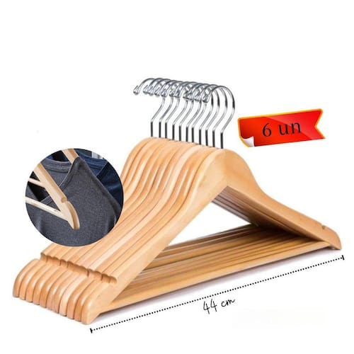 Kit com 6 Cabides muito mais duráveis e resistentesO seu guarda-roupas nunca mais ficará bagunçado e a suas roupas amassadas, este cabide é fabricados em madeira de extrema qualidade e com gancho feito em metal, suas roupas estarão sustentadas com MAIS charme e MAIS elegância.Descrição TécnicaMaterial: MadeiraGancho : Metal CromadoMarca: ImportadoGarantia do Fabricante: Contra defeito de fabricaçãoDimensões do produto : Altura 22cm x Comprimento 44cm x Espessura 01cm Marca: Majohn Utilidades