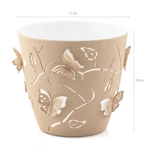 O kit 6 cachepots 3D da Plasvale é uma coleção encantadora de vasos de flores e plantas, projetados para adicionar um toque de beleza e natureza à sua mesa ou ambiente. Cada floreira de mesa tem uma capacidade de 2,5 litros, proporcionando espaço suficiente para abrigar diferentes tipos de plantas e flores, tornando-os ideais para pequenos arranjos ou até mesmo para cultivar ervas e plantas menores. Os vasos para plantas apresentam um design exclusivo, pois possuem detalhes em borboletas que podem ser dobradas e proporcionam um efeito 3D maravilhoso. Feitas de plástico polipropileno resistente, as floreiras de mesa são compostas por duas peças individuais: a peça interna, na cor branca, que possui furos em sua base para escorrer a água e já a peça externa, na cor bege, não possui furos, para prevenir qualquer sujeira no ambiente decorado. Isso ajuda a evitar o acúmulo de umidade e garante um ambiente saudável para o crescimento das plantas.
