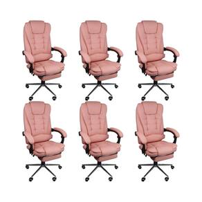 Kit 6 Cadeira Presidente Ergonômica Apoio Para Pés Rosa