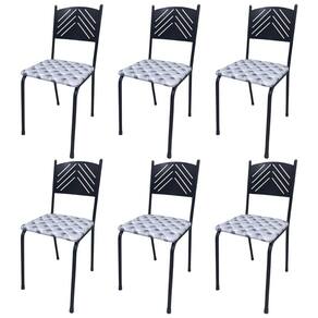 Kit 6 Cadeira Preta para Cozinha Jantar Metal Tubular Almofadada Assento Captone