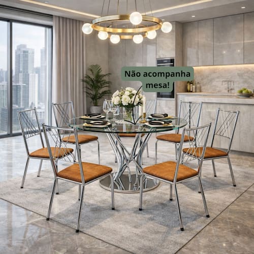 ATENÇÃO: A MESA NÃO ESTÁ INCLUSA NESTE ANÚNCIO!Kit de 6 Cadeiras Cromadas com Assento Estofado - Modernas e ResistentesRenove sua sala de jantar, cozinha ou área gourmet com este kit de cadeiras modernas, elegantes e altamente resistentes . Com estrutura em aço cromado , as cadeiras oferecem durabilidade, estabilidade e um acabamento sofisticado.O assento estofado em material sintético proporciona conforto no uso diário, além de ser fácil de limpar e manter. O encosto com design vazado traz leveza visual e combina com diversos estilos de decoração - moderno, industrial ou clássico.Perfeito para famílias, ambientes comerciais, restaurantes, lanchonetes, escritórios e áreas gourmet , garantindo beleza, conforto e excelente custo-benefício.Diferenciais do ProdutoEstrutura em aço cromado resistenteAssento estofado confortável e eleganteDesign moderno e versátilFácil limpeza e manutençãoLeves, firmes e duráveisIdeais para casa ou comércioÓtima opção para conjuntos de mesaCaracterísticas TécnicasEstrutura: Aço cromadoAssento: Estofado em material sintéticoEstilo: ModernoUso: Residencial e comercialProduto novo e de excelente qualidadePeso Suportado: Até 140 KgOpções de KitKit com 2 CadeirasKit com 4 CadeirasKit com 6 CadeirasIndicado paraSala de jantar, cozinha, área gourmet, restaurante, lanchonete, escritório, salão e comércio em geral.ATENÇÃO: MESA NÃO ESTÁ INCLUSA NESTE ANÚNCIO!.....tagsSala de jantar Móveis Refeição Conjunto Conforto Decoração Design Estrutura Clássico Retrô Vinílico Limpeza Durabilidade Versátil Reunião Mesa Macio Lavável Simples Funcional Convivência Praticidade Espaço Resistência Elegante Compactos Organização Moderno Interior Residencial Cozinha Apartamento Casa Lar Revestido Assento Encanto Sofisticação Beleza Aconchego Ergonomia Estabilidade Utilidade Harmonia Qualidade Conjunto familiar Convivialidade Estilo industrial Estilo minimalista Contemporâneo Tradicional Charme Requinte Acabamento Resistível Leveza Compacto Confortável Design ergonômico estofada confortável luxo elegante acolchoada resistente durável versátil ergonômica sofisticada premium compacta design decorativa moderna reforçada funcional qualidade minimalista prática contemporânea clássica revestida decor beleza gourmet varanda apartamento ambiente salao restaurante bar escritório comercial evento recepção refeitório hotel pousada couro courino fibra sintetica junco impermeável aço metalica ferro tubolar suporta peso Marca: Não Informado Marca: Não Informado Marca: Não Informado