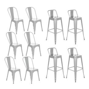 Kit 6 cadeiras + 4 banquetas altas com encosto industrial Loft Vintage Iron Tolix prata Prata -