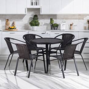 Kit 6 Cadeiras Alumínio e Mesa Tampo Varanda Jardim Piscina Jardim Trama - Marrom Escuro