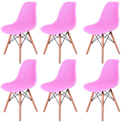 Kit com seis (6un) cadeiras. O design das Cadeiras Eames Eiffel já são perfeitos para compor um ambiente confortável e moderno, com esse design todo furadinho (de bolinhas/ poá) ficaram ainda mais incríveis! Elas mesclam são importantes itens para a sua decoração de qualquer ambiente, e independente da proposta, uma cadeira dessas de alta qualidade podem trazer um ar de requinte ao ambiente.