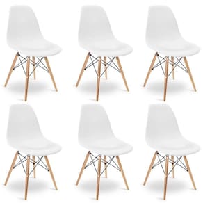 Kit 6 Cadeiras Charles Eames Eiffel Wood Design Branca