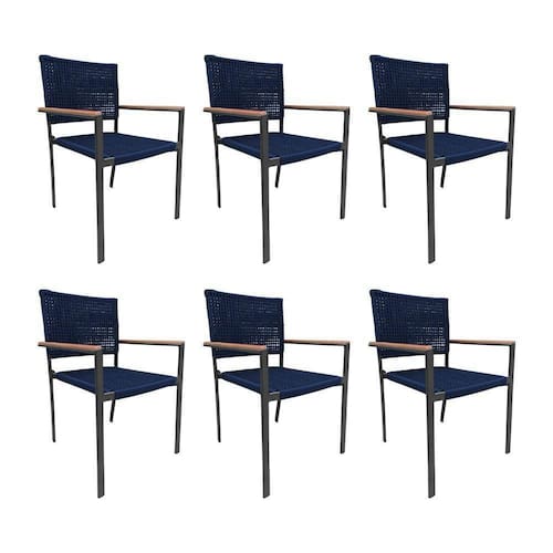 Kit 6 Cadeiras Piracicaba Corda Náutica Braço Com Detalhe Em Madeira Base Alumínio Preto/azul Marinh - Cor: Azul A Cadeira Piracicaba é um elegante e confortável móvel de assento projetado para proporcionar um ambiente relaxante e estiloso. Feita com corda náutica de alta qualidade, essa cadeira combina forma e função de maneira excepcional.CaracterísticasTipo: CadeiraModelo: PiracicabaCor da Base: PretoCorda Náutica: Azul MarinhoEstrutura em AlumínioDIMENSÕES DO PRODUTOAltura: 83cmLargura: 50cmComprimento: 50cmATENÇÃOAS IMAGENS SÃO MERAMENTE ILUSTRATIVAS E PODEM SOFRER VARIAÇÕES DE COR E PEQUENOS DETALHES DE ACORDO COM O SEU MONITOR, ILUMINAÇÃO DO AMBIENTE E ATÉ MESMO A SUA PERCEPÇÃO VISUAL.Kit 6 Cadeiras Piracicaba Corda NÃutica BraÃo com Detalhe em Madeira Base AlumÃnio Preto/azul Marinh Marca: Guimaraes Store Ean: 7895037209112