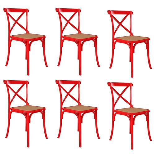 Kit 6 Cadeiras Cross Katrina X Vermelha Assento Bege Aço New Green - Cor: Preto