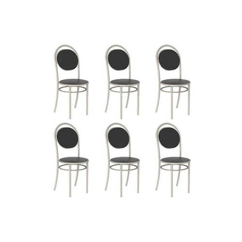 Kit 6 Cadeiras de Cozinha 190 Aço 6 Uni Prata/Courano Preto - Carraro