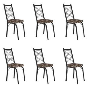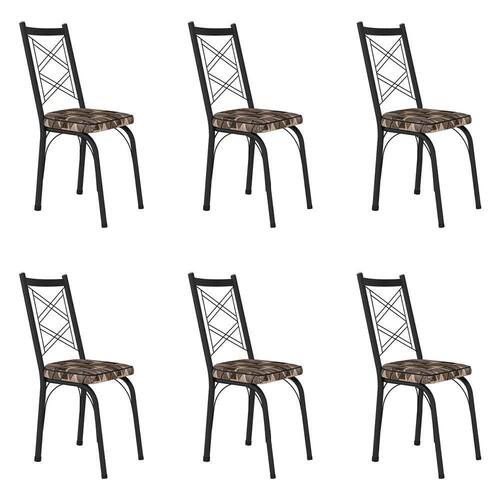 Kit 6 Cadeiras De Cozinha Delaware Estampado Mosaico Palha Pés De Ferro Preto - Pallazio
