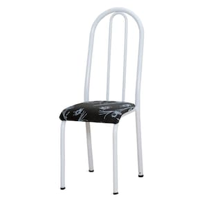 O estofamento estampado não apenas confere personalidade à cadeira, mas também proporciona conforto durante as refeições. Os pés de ferro garantem estabilidade e durabilidade, tornando-a uma escolha ideal para o ambiente da cozinha.