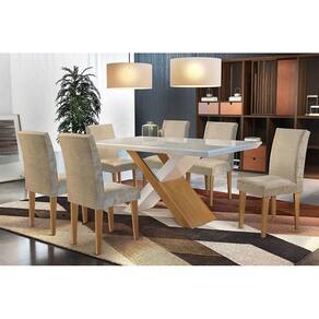 Kit 6 Cadeiras de Cozinha Grécia 6 Un Capuccino/Linho Bege Turim - Rufato