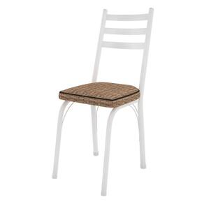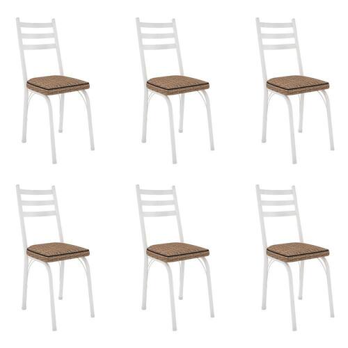 Kit 6 Cadeiras de Cozinha Luisiana Estampado Rattan Bege Pés de Ferro Branco - Pallazio