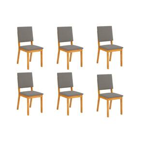 Cadeira Sala de Jantar Talia Kit 6 Un Cedro/Suede Lunar - DJ Móveis
